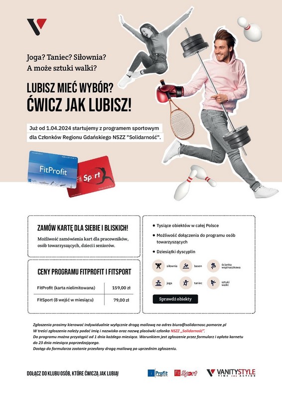 Zapraszamy członków NSZZ "Solidarność" z aktywną legitymacją do przystąpienia do programu sportowego.