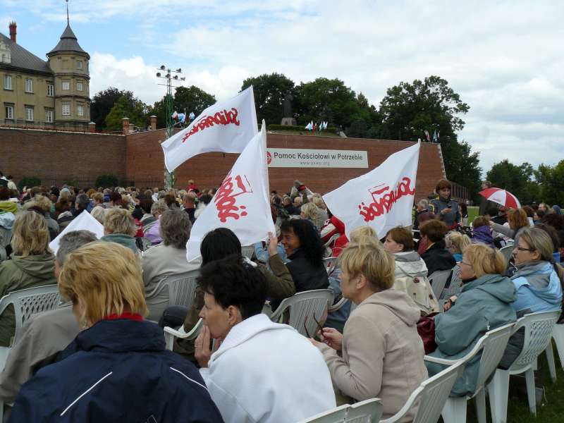 Potem jeszcze Msza Św. - jak zawsze byliśmy widoczni jako "Solidarność'' reprezentowały nas dwa poczty sztandarowe - nasz (serdeczne podziękowania dla Ewy Kuczyńskiej, Steni Jurkowskiej i Olka Jurkowskiego) oraz Sekcji Krajowej Oświaty (jak zawsze w poczcie niezawodny Krzysztof Jędrzejczyk). Uczestnicy konferencji na zakończenie biorą udział w Drodze Krzyżowej na wałach, wysłuchując w zamyśleniu niezwykle mądrych rozważań biskupa Edwarda Dajczaka. Wzbogaceni duchowo ruszyliśmy na nocleg do Lichenia, następnie zwiedzaliśmy katedrę gnieźnieńską, gdzie pokłoniliśmy się relikwiom Św. Wojciecha i pochowanym w podziemiach Prymasom Polski, m.in. Ignacemu Krasickiemu. Każdy, kto choć raz zdecydował się skorzystać z naszej oferty pielgrzymkowej, wie, że nie jest to czas stracony, a wręcz przeciwnie - można się wyciszyć i przewartościować priorytety życiowe, dostrzec w innym świetle otaczający świat, a przede wszystki samego siebie.