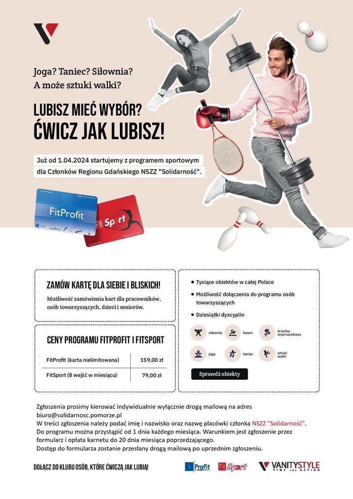Zapraszamy członków NSZZ "Solidarność" z aktywną legitymacją do przystąpienia do programu sportowego.