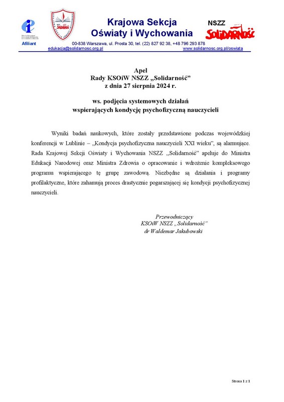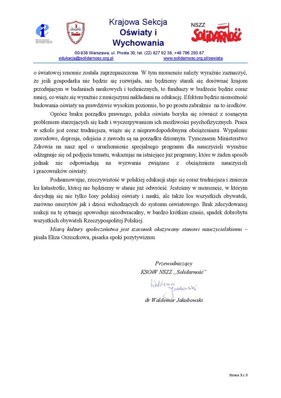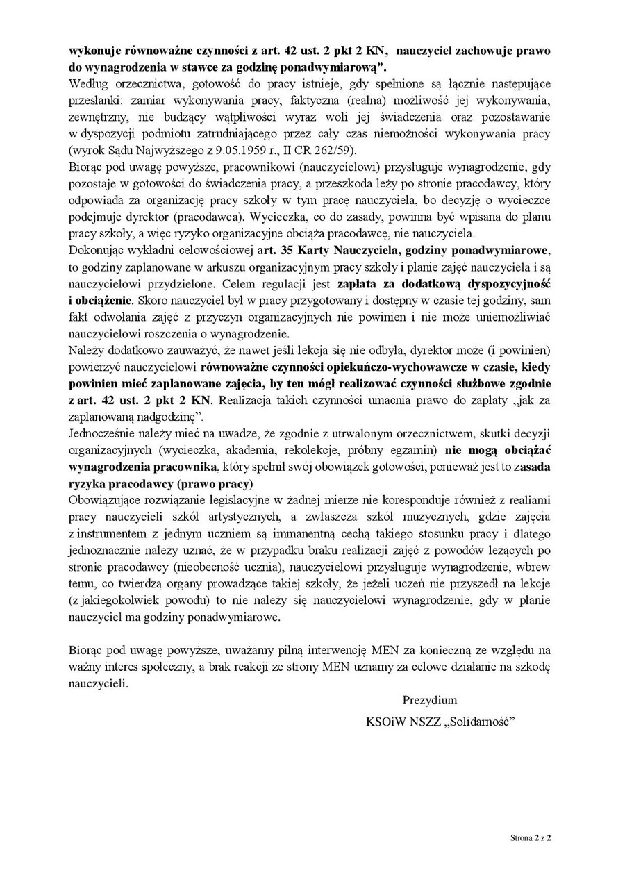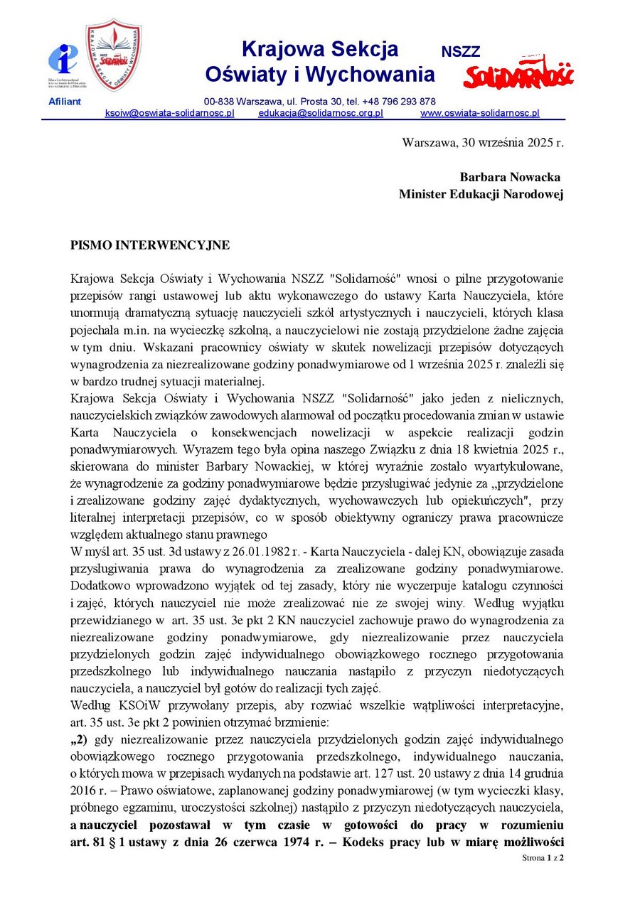 Pismo interwencyjne ws. godzin ponadwymiarowych